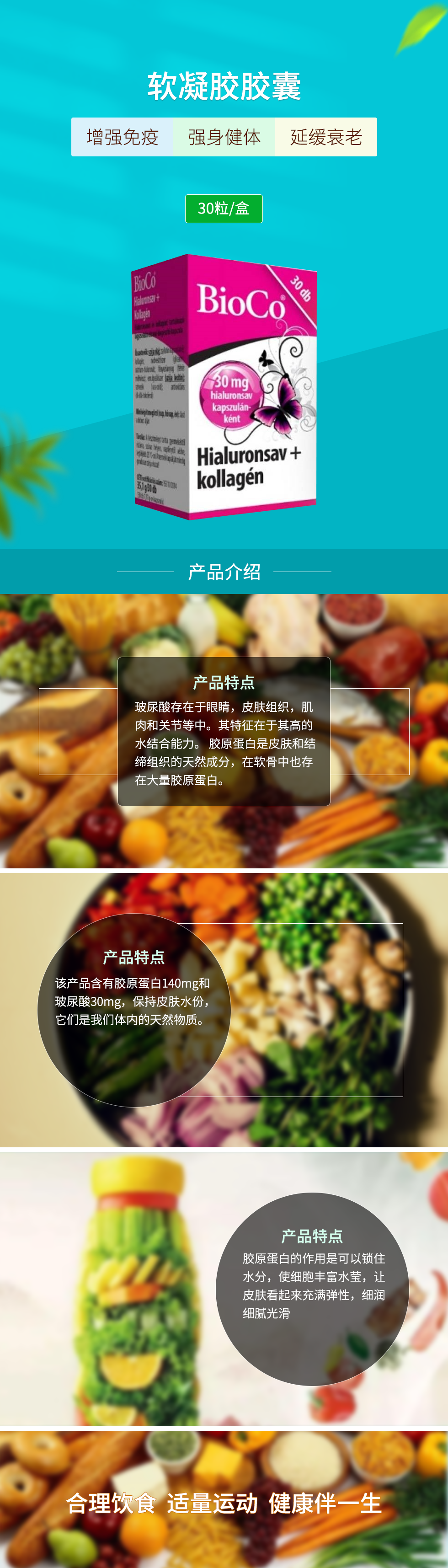 富含玻尿酸和胶原蛋白的软凝胶胶囊30粒/盒