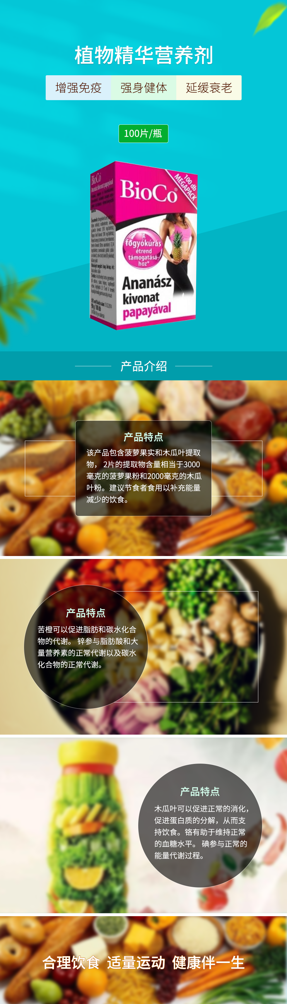 菠萝,木瓜和苦橙+矿物质植物精华营养剂100片/瓶