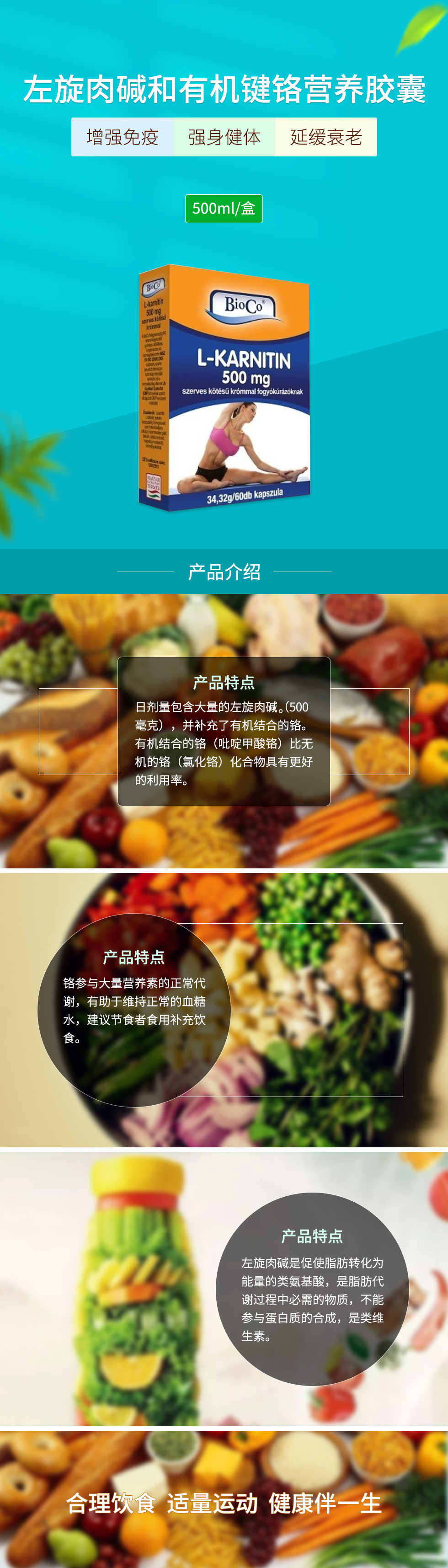 左旋肉碱营养胶囊500ml/盒