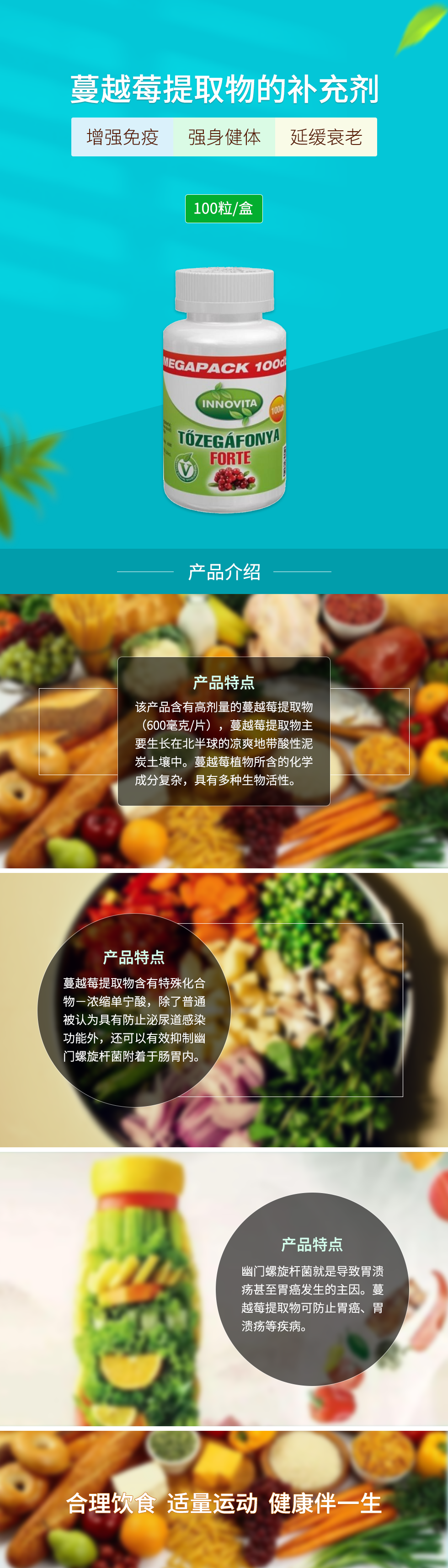 包含蔓越莓提取物的补充剂100粒/盒